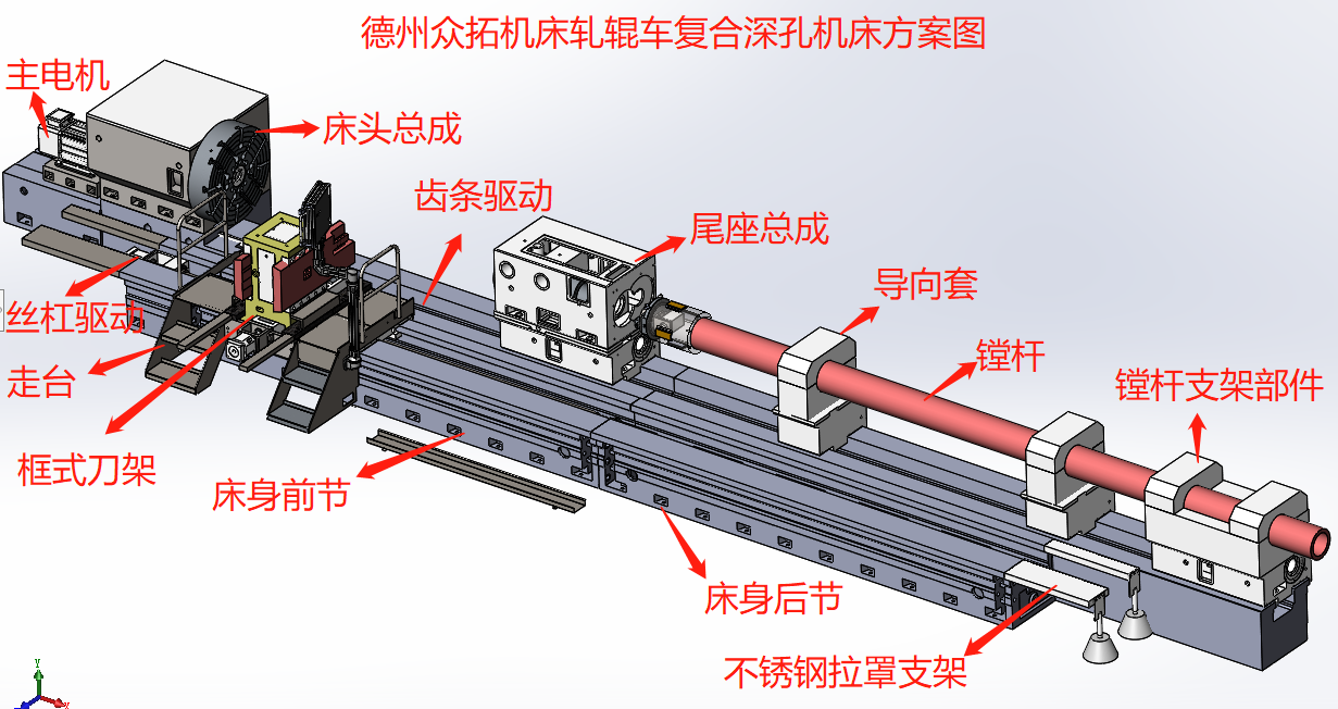 機(jī)床前半部分為車床結(jié)構(gòu),在機(jī)床后半部分增加了深孔結(jié)構(gòu):