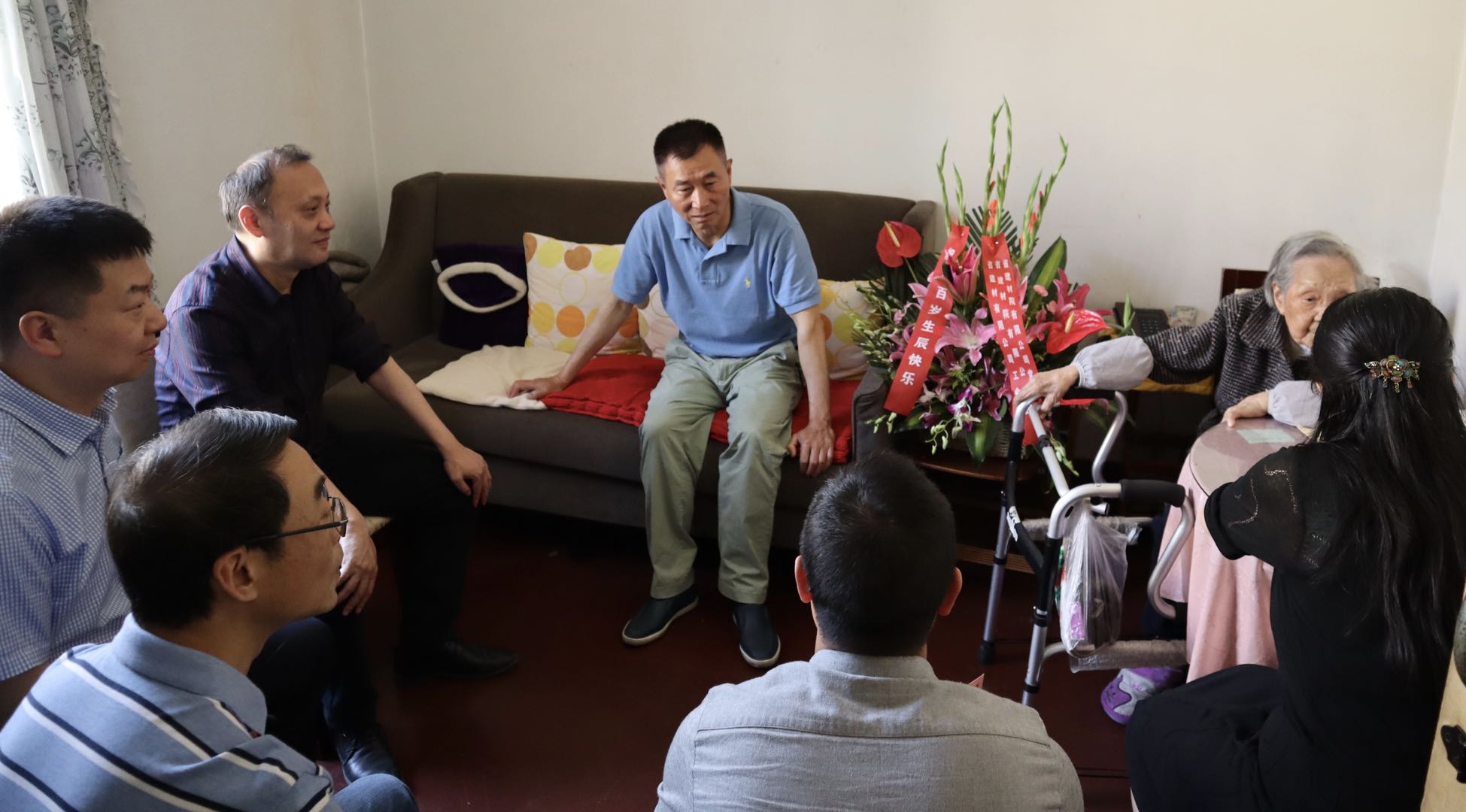 4月30日,公司黨委書記、董事長、總經(jīng)理王強,黨委副書記、紀(jì)委書記、監(jiān)事會主席、工會主席趙狄,黨委委員、董事、副總經(jīng)理趙斌一行看望慰問百歲退休老專家毛寶仙同志,送去了慰問信、慰問金和鮮花,表達(dá)了崇高敬意和送上了誠摯祝福。